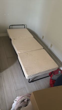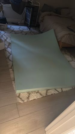 Mattress, full size with memory foam topper, metal bed frame, 9 bed risers and bed skirt price negotiable$155Escondido, CA