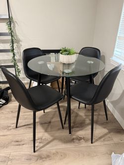 wayfair glass dining table and amazon leather black chairs$200Tacoma, WA