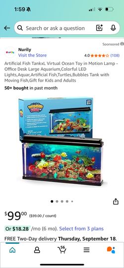 Artificial Fish TankxL Virtual Ocean Toy in Motion Lamp - Office Desk Large Aquarium,Colorful LED Lights,Aquar,Artificial Fish,Turtles,Bubbles Tank wi$25Mountain View, CA