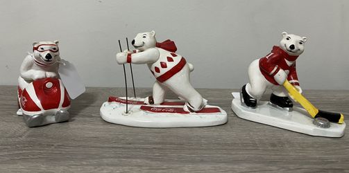 3 Vintage 1995 Coca Cola Ceramic Polar Bears by Enesco Corporation Home Decor$44South Windsor, CT