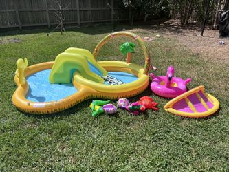Outdoor Inflatable Kiddie Pool and Play Center with Slide, pump and floaties$60Houston, TX