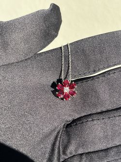 14k White Gold Lab-Grown Ruby (3.1mm) CVD Diamond (2.6mm) Pendant+Necklace$579Miami, FL