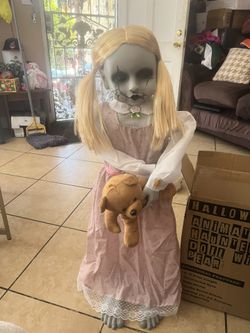 Muñeca animatronics de Halloween de 36 pulgadas, decoraciones animadas de 3 pies con sonido activado, sonido espeluznante, ojos iluminados, movimiento$50Santa Ana, CA
