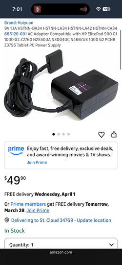 HP ElitePad charger with removable wall plug$20Kissimmee, FL