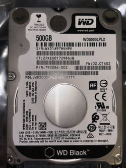 WD Black 500 GB 2.5” HDD – 60 Hours, 7200 RPM – $80$50Kissimmee, FL