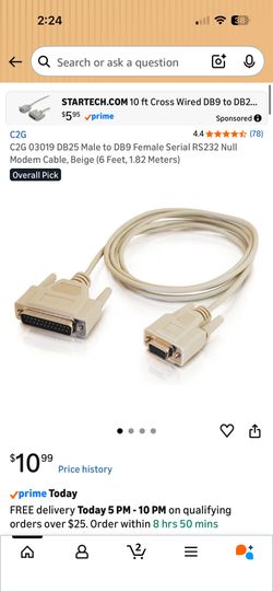 C2G 03019 DB25 male to DB9 female serial RS232 null modem cable$5Kissimmee, FL