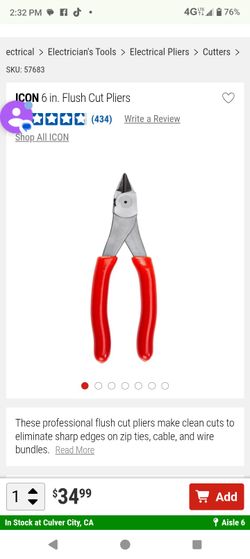 ICON FLUSH CUT PLIERS (REG $35) TODAY $15$15Inglewood, CA