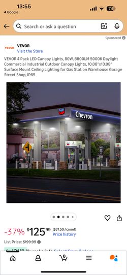 VEVOR 4 Pack LED Canopy Lights, 80W, 8800LM 5000K Daylight Commercial Industrial Outdoor Canopy Lights, 10.08"x10.08" Surface Mount Ceiling Lighting f$60Upland, CA