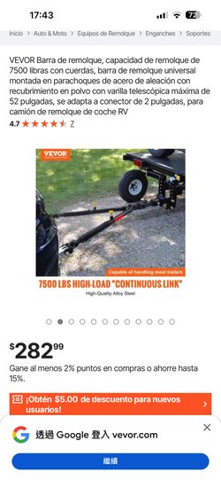 VEVOR Barra de remolque, capacidad de remolque de 7500 libras con cuerdas, barra de remolque universal montada en parachoques de acero de aleación con$140Montclair, CA
