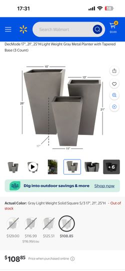 DecMode 17", 21", 25"H Light Weight Metal Planter with Tapered Base (3 Count) color random$50Chino, CA