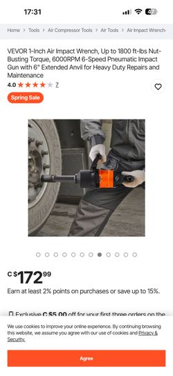 VEVOR 1-Inch Air Impact Wrench, Up to 1800 ft-lbs Nut-Busting Torque, 6000RPM 6-Speed Pneumatic Impact Gun with 6" Extended Anvil for Heavy Duty Repai$90Montclair, CA