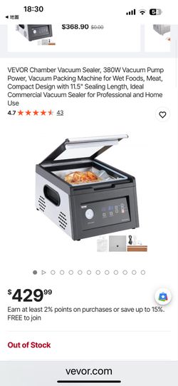 VEVOR Chamber Vacuum Sealer, 380W Vacuum Pump Power, Vacuum Packing Machine for Wet Foods, Meat, Compact Design with 11.5" Sealing Length, Ideal Comme$230Upland, CA