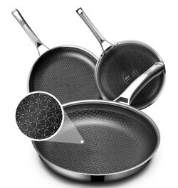 Non Stick Frying Pans Set, Hybrid Skillet Set Nonstick (8+10+12inch), Pans for cooking, PFOA Free Stainless Steel Kitchen set, Dishwasher and Oven-Saf$49City Of Industry, CA