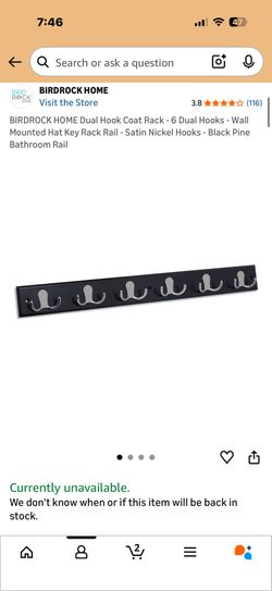 Birdrock Home Dual Hook Coat Rack - 6 Dual Hooks$20Spring Valley, CA