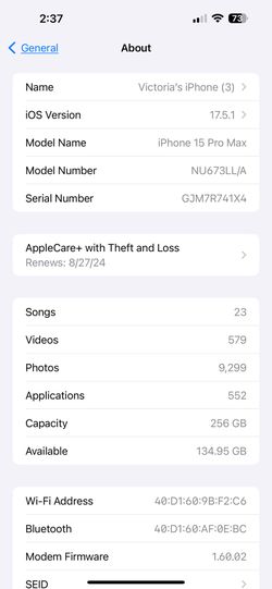iPhone 15 Pro Max 256 Gbts3 Days Old $700Vista, CA
