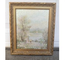 Impressionist Painting Mother Children Lake Spring Flowers Framed Artist Signed$125Lucas, TX