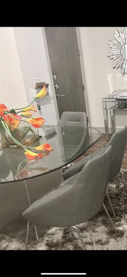 Round Glass Dining Table And 4 Leather Chairs$600Frisco, TX