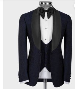 Brand New Black Satin Collar Navy Blue Suit Tuxedo In Size 42 $250Kentwood, MI