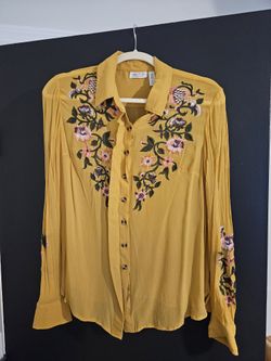 Anthropologie Sheer embroidered silk button-up .$20Summerville, SC