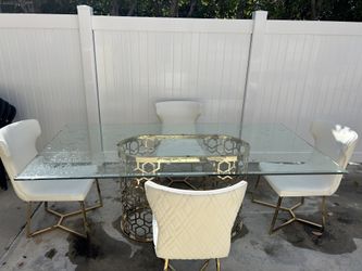 Glass Table with 4 White Chairs $400Burbank, CA