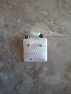 Emerald And Cubic Zirconia Earring 14 K Yellow Gold$50Hemet, CA