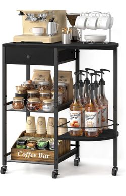 VINAEMO Coffee Bar Station w/ Wheels & Drawer 15.35” Deep Black$45Canton, MI