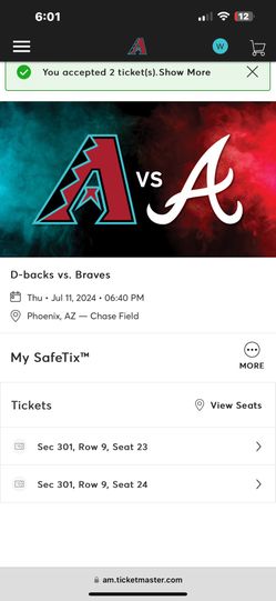 Diamond Back Vs. Braves 07/11/2024$40Peoria, AZ