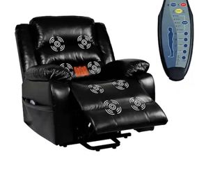 Faux Black Leather Power Lift Recliner Chair with Massage, Remote, Footrest, Studded & Tufted Detailing, Side Pocket. retail price $407 our price $2$260Phoenix, AZ