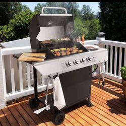 4-Burner Propane Gas Grill in Black & Silver with Stainless Steel Upper Lid and 2 Side Shelves, for Garden Barbecue. retail price $271 our price $15$150Phoenix, AZ