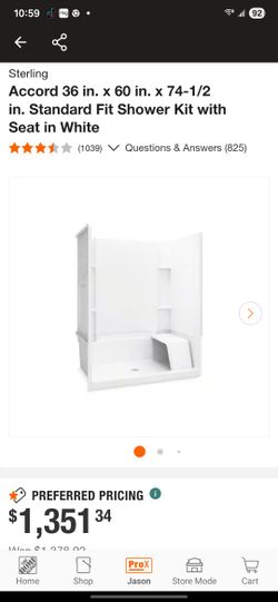 Sterling Accord 36 X 60 X 74 1/2 Standard Fit Shower Kit With White Seat$700Riverside, CA