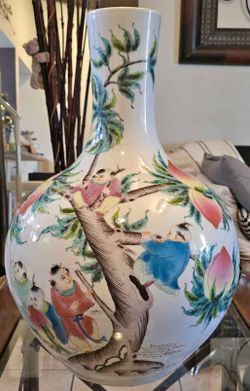 Vintage Chinese Familie Rose Peach & Forest Design Beautiful Porcelain Vase Marked$900Tampa, FL