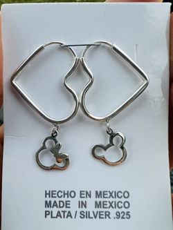 New 925 Sterling Silver Mickey Mouse Heart Hoop Earrings Disney Earrings Made In Mexico Handmade $28Damascus, MD