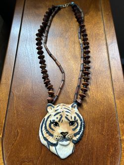 Vintage 80’s Porcelain Tiger Necklace signed By Artist$70San Diego, CA
