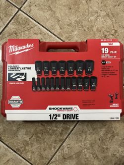 SHOCKWAVE 1/2 in. Drive SAE 6 Point Impact Socket Set (19-Piece) MILWAUKEE$120Phoenix, AZ