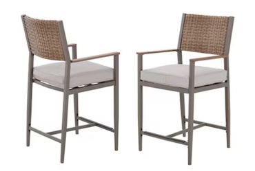 Set of 2 Wicker Gray Steel Frame Stationary Counter-height Chair with Cream Cushioned Seat$210Phoenix, AZ