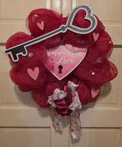 Handmade Red Deco Mesh Valentine's Day Wreath $25Riverside, CA