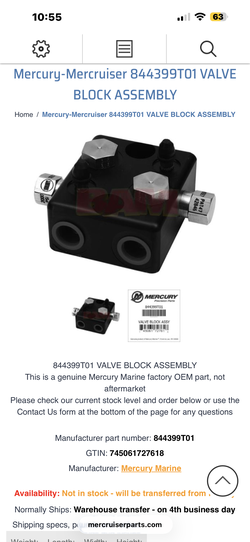 Mercury-Mercruiser 844399T01 VALVE BLOCK ASSEMBLY$1,000Miami, FL