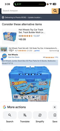 Hot Wheels Jumbo Stunt Box 50 Plus Parts for 6 Stunts, Multicolor, Model:FVF18 $20Glendale, AZ