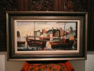 1960s Mid-Century “Seaside Boats” Oil Painting by Felmart – 20" W X 24" H $650Los Angeles, CA