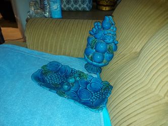 Rectangular Dish & Table Decoration, Blue Fruit & Green Leaves, 1960's, Japan.$30Riverside, CA