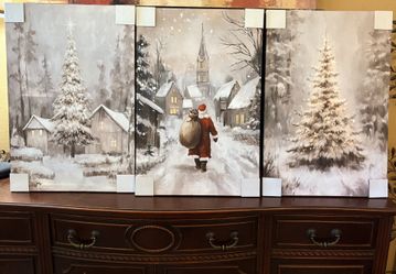 Christmas decor, wall art, canvas set, Santa, winter decor, farmhouse, holiday decorations, New Never Used. $20Houston, TX