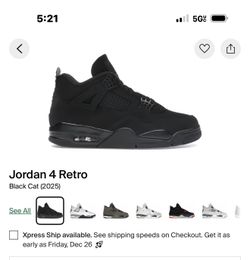 Air Jordan 4 Black Cat$320Wood Dale, IL
