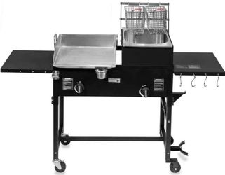 Barton Double Burner Stove and Deep Fryer w/Two Side Shelves 58,000 BTU Outdoor Propane Portable Camping Cooking Range