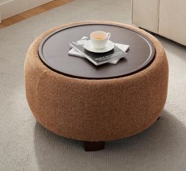 Round Ottoman with Storage, 30" Upholstered Ottoman Table with Removable Wood Top and Solid Wood Legs for Living Room, Bedroom, Apartments, Orange$85Riverside, CA