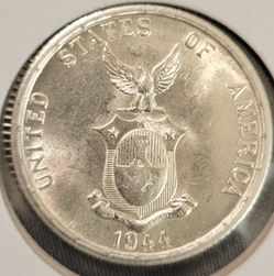 1944S Choice Gem BU Philippines 50 Centavos Type 1 "Mule"(obverse of 1907).$119Tacoma, WA