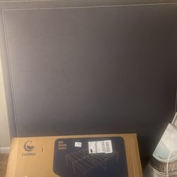 Grey upholstered Queen Size Headboard With Brand New Bed frame. Grey Velvet Bench With Nice Size Storage Compartment$450Westwood, MA