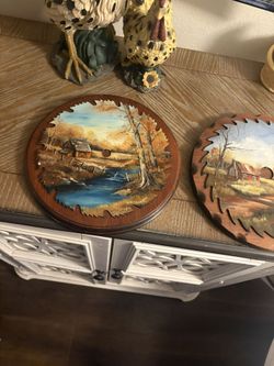 Set If Two Hand CB painted Saws On A Wooden Frame$20Brea, CA