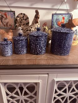 Home Enamelware Canister Set 4 piece Blue/White Splatter ware W Lids$25Brea, CA