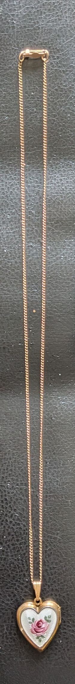 AMC 14k Gold Heart Pendant Necklace Enamel Rose Design Box Chain 18" Vintage$127Puyallup, WA