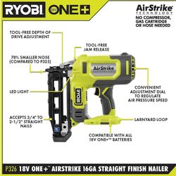 ONE+ 18V AirStrike 16-Gauge Cordless Finish Nailer (Tool Only) P326$100Santa Ana, CA